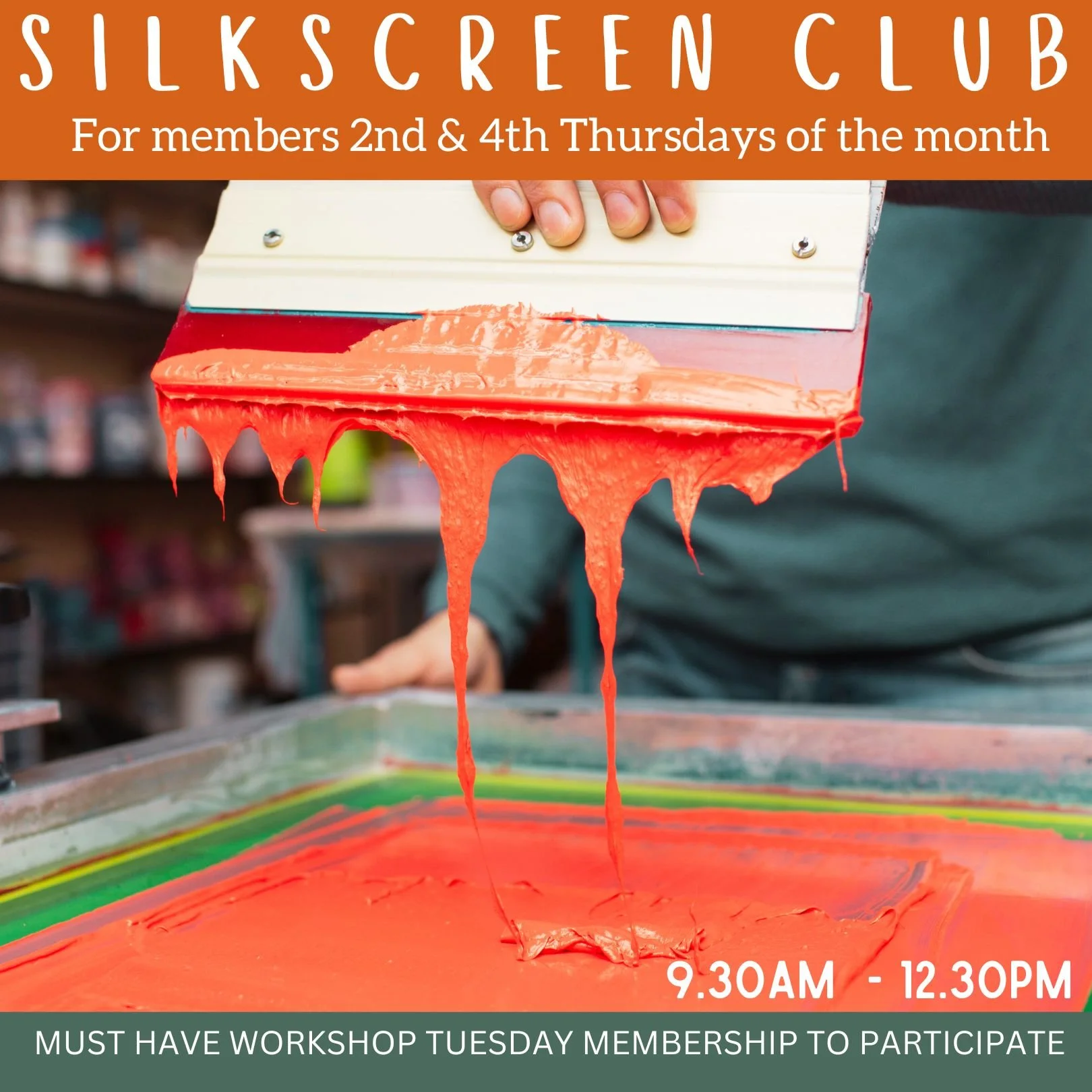 Silkscreen Club runs the second and fourth Thursday of the month from 9.30am to 12.30pm except NSW school holiday times.